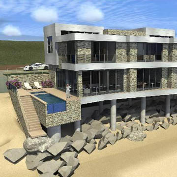 end of cul-de-sac location off PCH. Doug Burdge AIA plans: 5 Bed/5.5