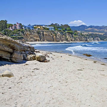 sits toward the middle of sandy Carbon Beach on 80ft of frontage.
